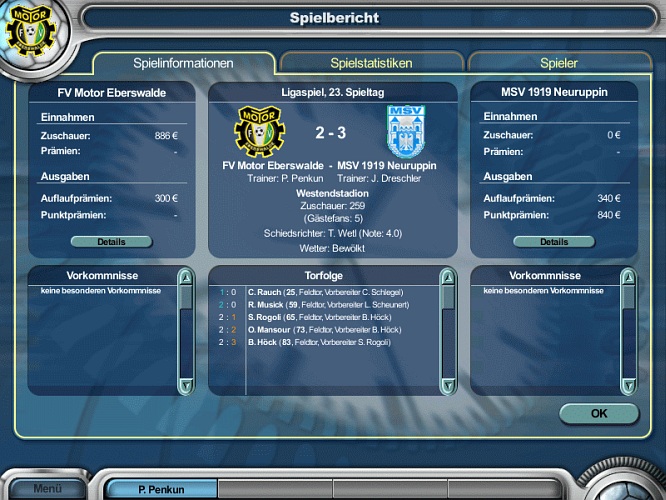 Nach einer Stunde 2:0 geführt, dann noch 2:3 verloren.