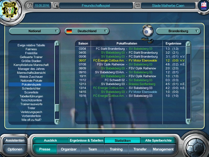 Übersicht über die Landespokalfinals meiner Amateurzeit.