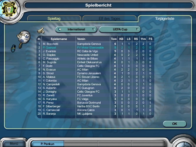 Top-Torschütze Quenzel für Motor Eberswalde im UEFA-Cup.