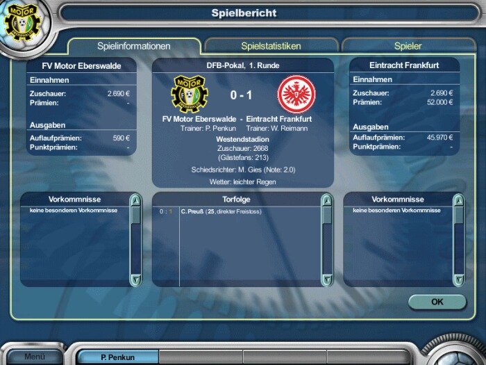Im DFB-Pokal gegen Eintracht Frankfurt nur knapp unterlegen.